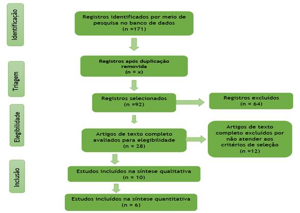 Nas bases de dados foram encontradas 171 publicações potencialmente selecionáveis, em seguida foram selecionados artigos dos últimos 5 anos, com textos completos, disponível em inglês, português e espanhol e foram selecionados 92, e dos artigos que apresentaram nos critérios de inclusão e exclusão foram selecionados 28 artigos para leitura na íntegra, após a remoção dos artigos duplicados, foram selecionados 16 artigos para leitura na íntegra, dentre estes sendo 9 qualitativos e 7 quantitativos.