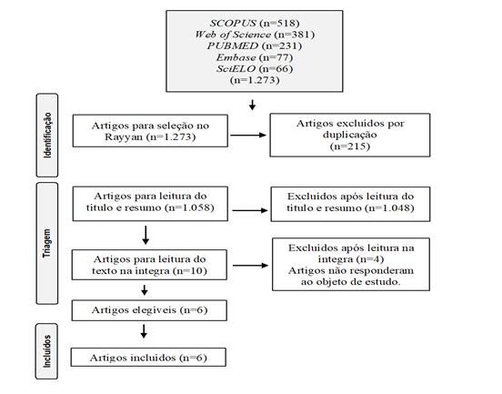 A partir da seleção dos artigos após aplicação dos critérios de inclusão e etapas definidas no PRISMA, foram incorporados seis artigos científicos que compuseram esta revisão.