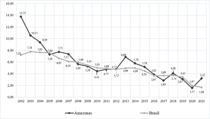 Amazonas between 2002 and 2021. Method: This is an epidemiological,