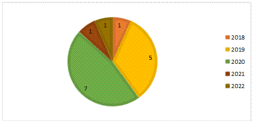 No período de janeiro de 2018 a junho de 2022, 15 mulheres foram submetidas a histerectomia obstétrica em decorrência da hemorragia puerperal na unidade Materno-Infantil do Hospital Universitário do Maranhão. A distribuição anual foi a seguinte: 1 caso no ano 2018, 5 casos no ano 2019, 7 casos no ano 2020, 1 caso em 2021 e 1 caso em 2022 conforme o gráfico 1.