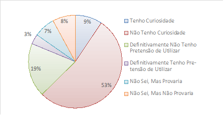 Como exposto, 108 participantes (53%) não possuem curiosidade acerca do uso do cigarro eletrônico, bem como 38 participantes (19%) definitivamente não possuem a pretensão de usá-lo. Além disso, 19 possuem curiosidade, 15 não sabem se posicionar acerca deste assunto, porém, fariam o uso caso tivessem a oportunidade.