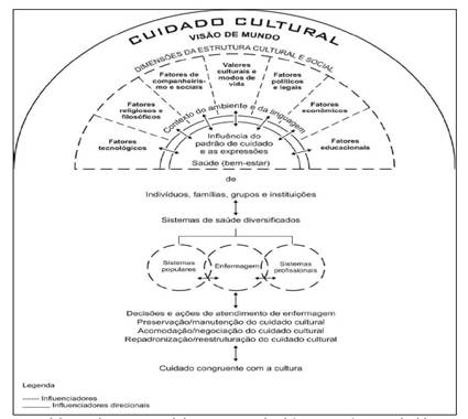 De tal forma, os modelos de avaliação da atenção à saúde e ao cuidado, como o de Madeleine Leininger (1991), que conceitua a preservação e a variedade de fatores culturais em contestação ao modelo hegemônico, centrado nos sinais e sintomas das doenças, são de fundamental importância para a mudança de paradigma da população e para o entendimento dessas premissas vivenciadas, além de facilitar a compreensão, por parte dos profissionais de saúde, sobre o modo de vida de cada povo (4-5).