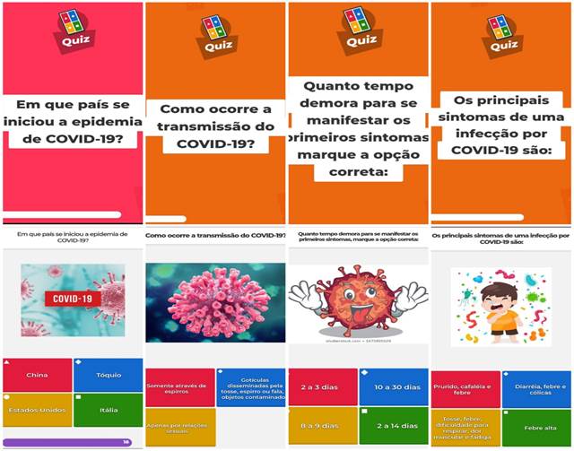 Desta forma as oito perguntas iniciais do jogo eram referentes as características da COVID-19, perguntas sobre a origem da doença, forma de transmissão, tempo para manifestação dos sintomas, os principais sintomas, grupos de risco e medidas de prevenção.