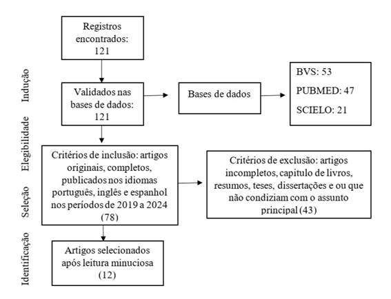 Figura 1 - Fluxograma do processo de seleção dos estudos para a revisão integrativa - Caxias, MA, Brasil, 2024.