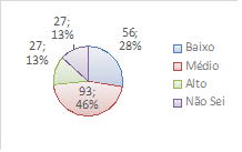 Como observado no gráfico 8, 93 participantes (46%) consideram seu nível de conhecimento médio acerca da temática, enquanto 56 (28%) consideram baixo, 27 (13%) alto e 27 (13%) alegam não possuírem conhecimento. Em análogo a isso, no Gráfico 9, 135 participantes (67%) acreditam que o uso de CE é mais prejudicial que o convencional, 42 (21%) acham que ambos são prejudiciais em mesma proporção, 3 (1%) acreditam que é menos prejudicial e 23 (11%) alegam não saber se posicionar acerca ao impacto do CE.