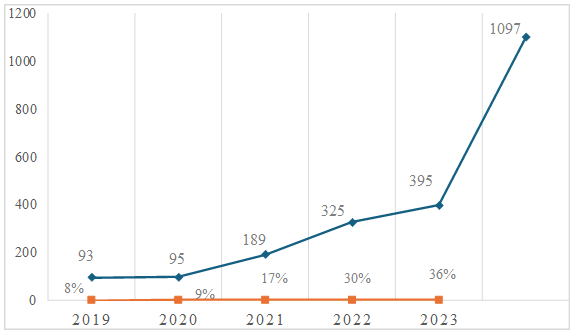 No período de 2019 a 2023, foram notificados 1.097 casos de toxoplasmose gestacional no estado do Piauí, conforme dados obtidos pelo DATASUS. Em 2023, foram registrados 395 casos, correspondendo a 36% do total notificado. Em contraste, no ano de 2020, durante o período pandêmico, foram diagnosticados apenas 95 casos, representando 9% das gestantes. É importante ressaltar que esses dados podem apresentar divergências devido à falta de atualização ou à presença de informações incompletas no sistema (Gráfico 1).