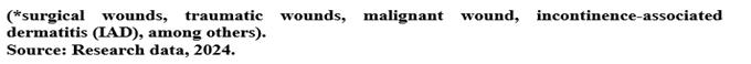 Furthermore, the recognition of other wounds predisposed to chronicity, such as those from surgical complications, diabetic foot, traumatic wounds and incontinence-associated dermatitis (IAD), although less evident in the literature, highlights the need to expand approaches in future studies, exploring their specific associations with patients' QoL (33).